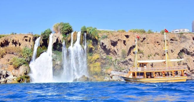 This astounding trip is available every day for travellers who want to witness the beauty spots of Antalya. The boat departs from the Aksu Kundu River opposite Mardan Palace Hotel. The pick-up is from the security gate of your hotel in the Antalya area, around 09:30. The boat departs at 10:00 through the Antalya coastline, where you will witness the beautiful views of the Mediterranean coastline. After this short tour, we will reach the small waterfall opposite Antalya’s old town, where you can swim in crystal-clear waters. After a 1-hour swimming break, you can enjoy an open buffet lunch on the boat at noon.