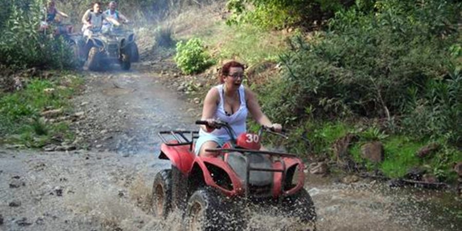 We pick our guests up from their hotels with air-conditioned vehicles and make an approximately 15-minute journey to the quad biking centre in the countryside. At the beginning of the two-hour quad safari, our instructors give detailed information about the tracks and the bikes, and then they will invite you to take a test ride. Afterwards, when everybody is ready, all the quads tour the tracks in convoy. The instructors also ride quads throughout the tour and will be available to answer your questions and needs. The safari track consists of challenging landforms such as muddy paths, dirt forest roads, small hills, paths among trees, river streams, and ponds. A day full of adrenaline, fun, and excitement awaits you in the magnificent nature of Side. After the trip, we will drop you off at your hotels comfortably.