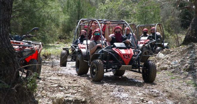 With our Side Family Buggy Safari, you can drive through muddy tracks, forest paths, and the natural surroundings of Side in a spacious 4-seater buggy, designed for extra space and shared fun. Get ready for an adventure full of laughter, excitement, and unforgettable memories you’ll be talking about long after your summer holiday in Side.