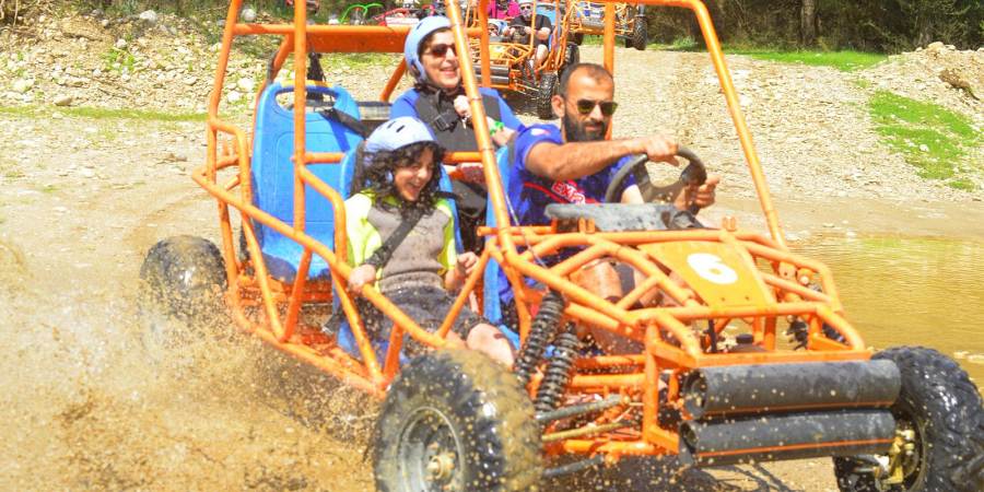 Turn your holiday into a shared experience with our Side Family Buggy Safari Tour, where fun and adventure come together. Unlike standard buggy tours, this experience allows you to enjoy the ride in a spacious 4-seater buggy, making it ideal for families and small groups. Drive along natural off-road tracks, splash through shallow water, and explore the beautiful surroundings of Side while enjoying a safe and exciting activity suitable for all ages. No driving license or prior experience is required — just bring your enthusiasm and get prepared for a memorable day with your loved ones. A small warning from us: you will definitely get muddy during this adventure — but that’s all part of the fun!