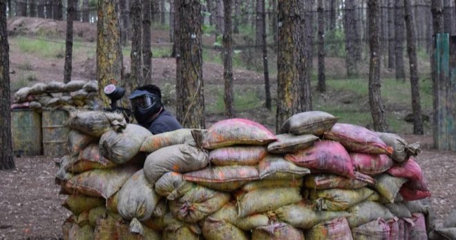 The Paintball centre covers 5000 square meters and includes a paintball field, a cafeteria, changing rooms, toilets and a meeting area for instruction. The paintball centre is among the woods, and there are many wooden barricades, two flag towers, sandbags, and many decorations in the field.
